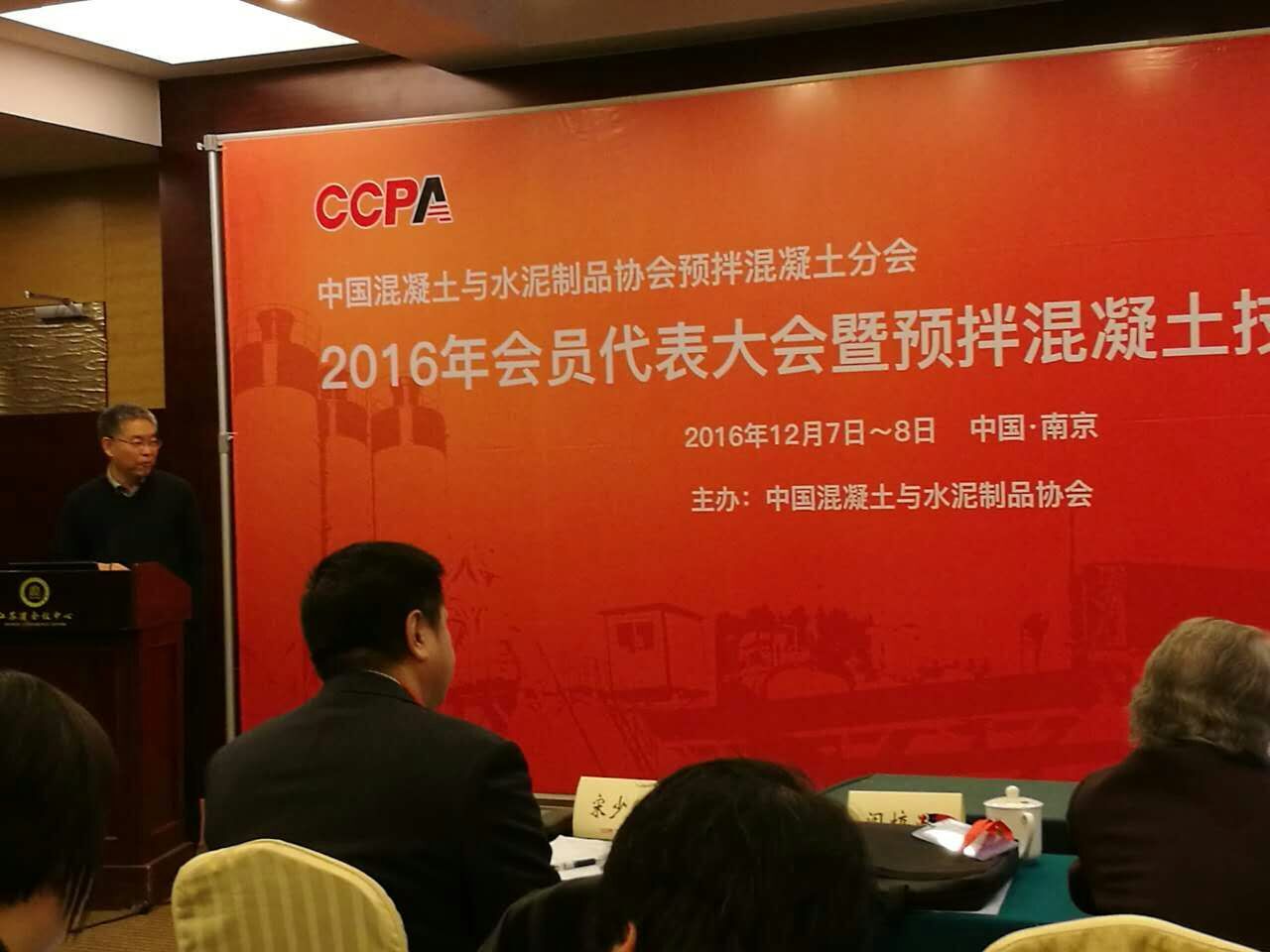 中國(guó)混凝土與水泥制品協(xié)會(huì)預(yù)拌混凝土分會(huì)2016年會(huì)員代表大會(huì)暨預(yù)拌混凝土技術(shù)交流會(huì),于2016年12月8日在江蘇南京召開(kāi),中國(guó)工程機(jī)械工業(yè)協(xié)會(huì)混凝土機(jī)械分會(huì)符忠軒會(huì)長(zhǎng)及砼商網(wǎng)負(fù)責(zé)人王雁瓴女士受邀參加了這次代表大會(huì)暨技術(shù)交流會(huì)。