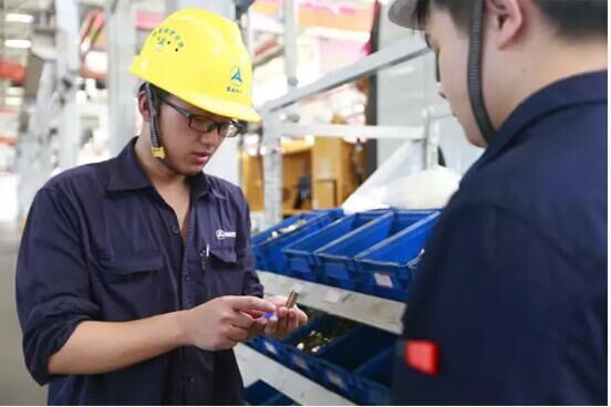 奉俊翔今年剛滿28歲,別看年紀(jì)不大,卻是一個(gè)地地道道的三一“老人”,入司八年以來,奉俊翔已經(jīng)帶出了8名徒弟。如奉俊翔這樣的“80后”技術(shù)骨干在泵車裝配班還有很多,他們已成為技術(shù)培訓(xùn)和傳承“精益制造”的中堅(jiān)力量。每天早會(huì)后,老員工們會(huì)將新人聚在一起,為新人工作中遇到的問題答疑解惑。這種“師帶徒”制度促進(jìn)了年輕工人的成長,也加快了企業(yè)發(fā)展。