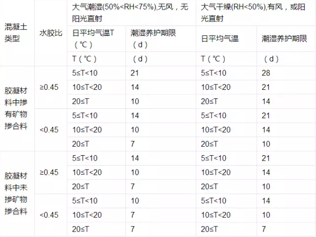 養(yǎng)護持續(xù)時間具體與混凝土的組成及配合比、環(huán)境溫度與濕度、養(yǎng)護方法、風(fēng)力、風(fēng)速等諸多因素有關(guān),混凝土質(zhì)量控制標(biāo)準(zhǔn)規(guī)定混凝土構(gòu)件或制品廠的混凝土采用蒸汽養(yǎng)護時,在出池或撤除養(yǎng)護措施前,應(yīng)進行溫度測量,當(dāng)表面與外界溫差不大于 20℃時,方可撤除養(yǎng)護措施或構(gòu)件出池;對于冬期施工的混凝土,混凝土強度達到設(shè)計強度等級的 50%時,方可撤除養(yǎng)護措施;采用潮濕自然養(yǎng)護時,則按施工規(guī)范具體實施。