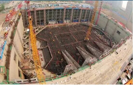 2013年中國尊項目建設啟動,嚴峻的考驗也隨之而來。據(jù)介紹,“中國尊”項目的基坑深度38米,局部達到40米,是中國未見、全球罕見的超深民用建筑基坑,創(chuàng)中國超高層建筑基坑深度之最,施工方需要在100小時內不間斷完成5.6萬立方米大體積底板混凝土澆筑工作。