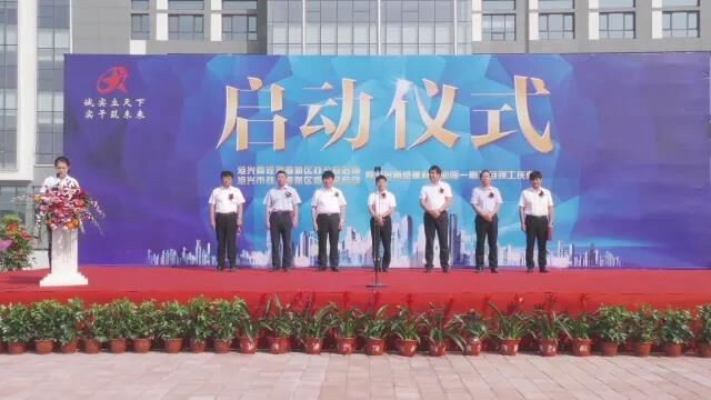 臺上領(lǐng)導共同為慶典儀式剪彩,將現(xiàn)場氣氛推向高潮。