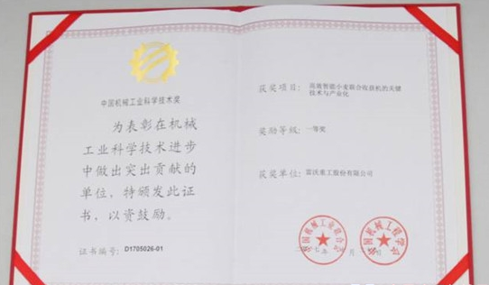 近日,在機械工業(yè)和農(nóng)機工業(yè)科學(xué)技術(shù)獎評選中,雷沃重工均攬獲一等獎。其中“高效智能小麥聯(lián)合收獲機的關(guān)鍵技術(shù)與產(chǎn)業(yè)化”項目榮獲“2017年度中國機械工業(yè)科學(xué)技術(shù)獎”一等獎、“大型動力換擋拖拉機智能化關(guān)鍵技術(shù)應(yīng)用與產(chǎn)業(yè)化”項目獲得中國農(nóng)業(yè)機械科學(xué)技術(shù)一等獎,眾多科學(xué)技術(shù)獎項的獲得,折射了雷沃重工科技創(chuàng)新邁上新臺階。