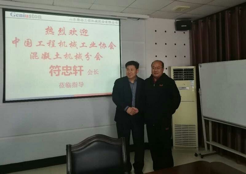 (左為:混凝土機械分會會長符忠軒,右為山東精砼工程機械股份有限公司董事長盛富春)