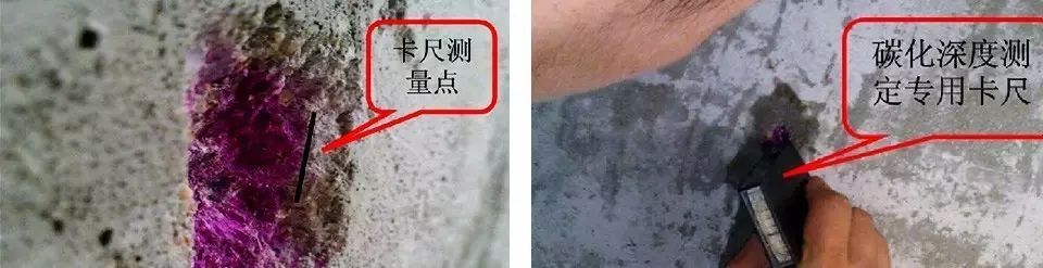 碳化會增大混凝土表面硬度,所以回彈判定其強度時需要檢測碳化深度(一般混凝土碳化深度可用碳化深度測量儀,碳化深度尺等進行測定。回彈值測量完畢后,應選擇不少于構(gòu)件的30%測區(qū)數(shù)在有代表性的位置上測量碳化深度值。)進行修正。