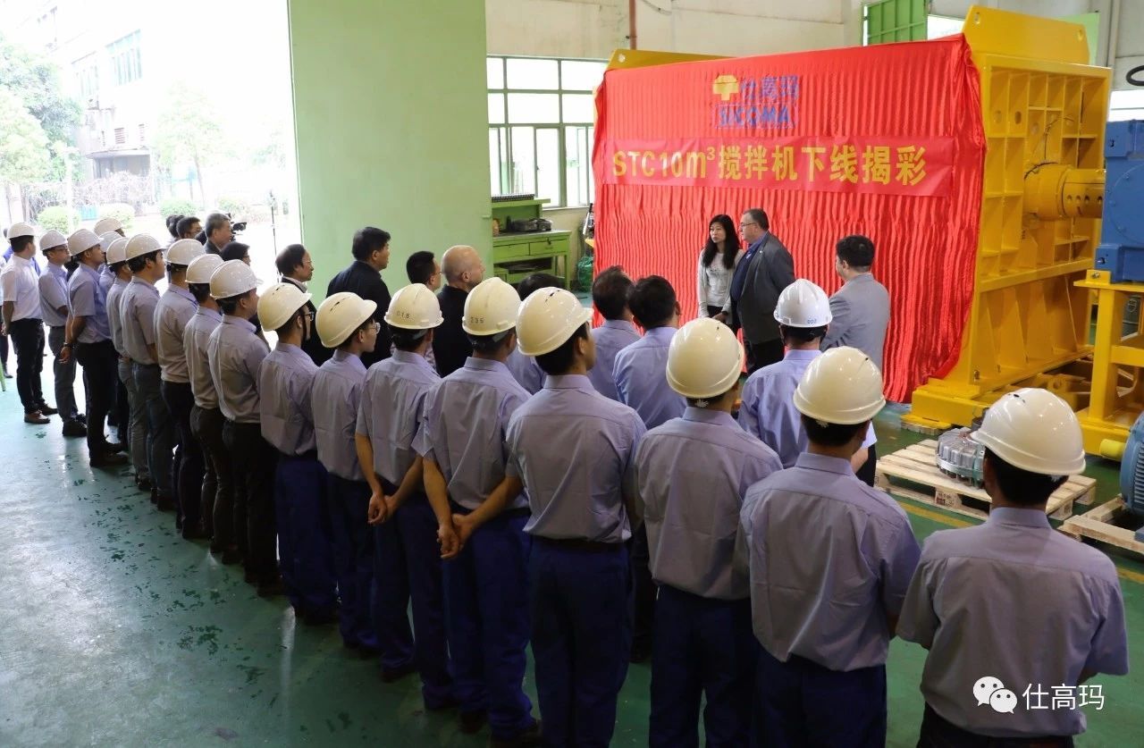 2018年4月18日,珠海仕高瑪公司10立方攪拌機(jī)下線揭彩儀式暨攪拌技術(shù)研討會在珠海仕高瑪公司舉行,中國工程機(jī)械協(xié)會混凝土機(jī)械分會符忠軒會長、長安大學(xué)馮忠緒教授、趙利軍博士、廣東長大公路工程公司楊東來總工程師、河南萬里路橋李冠峰總工程師、許昌德通特種混凝土公司孟超總經(jīng)理等領(lǐng)導(dǎo)、專家和嘉賓應(yīng)邀出席儀式和研討會,珠海仕高瑪公司股東黃志輝先生、意大利SICOMA公司董事長Mr. Galletti、總工程師Marco、珠海仕高瑪公司總經(jīng)理郗俊峰先生、財務(wù)總監(jiān)唐志敏女士及公司技術(shù)研發(fā)團(tuán)隊、生產(chǎn)團(tuán)隊、銷售團(tuán)隊、售后團(tuán)隊參加本次活動。