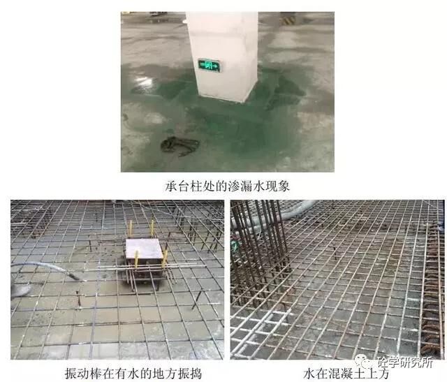 在工程實(shí)踐中,如積水未抽除,這些積水一部分會(huì)被混凝土吸收,從混凝土內(nèi)部由下向上泌出,成為天然的泌水,成為后期“點(diǎn)”滲漏的薄弱環(huán)節(jié),如承臺(tái)處,積水可能會(huì)順著柱鋼筋向上泌出,在鋼筋附近形成由下向上的滲水通道,成為后期滲漏水的薄弱環(huán)節(jié);