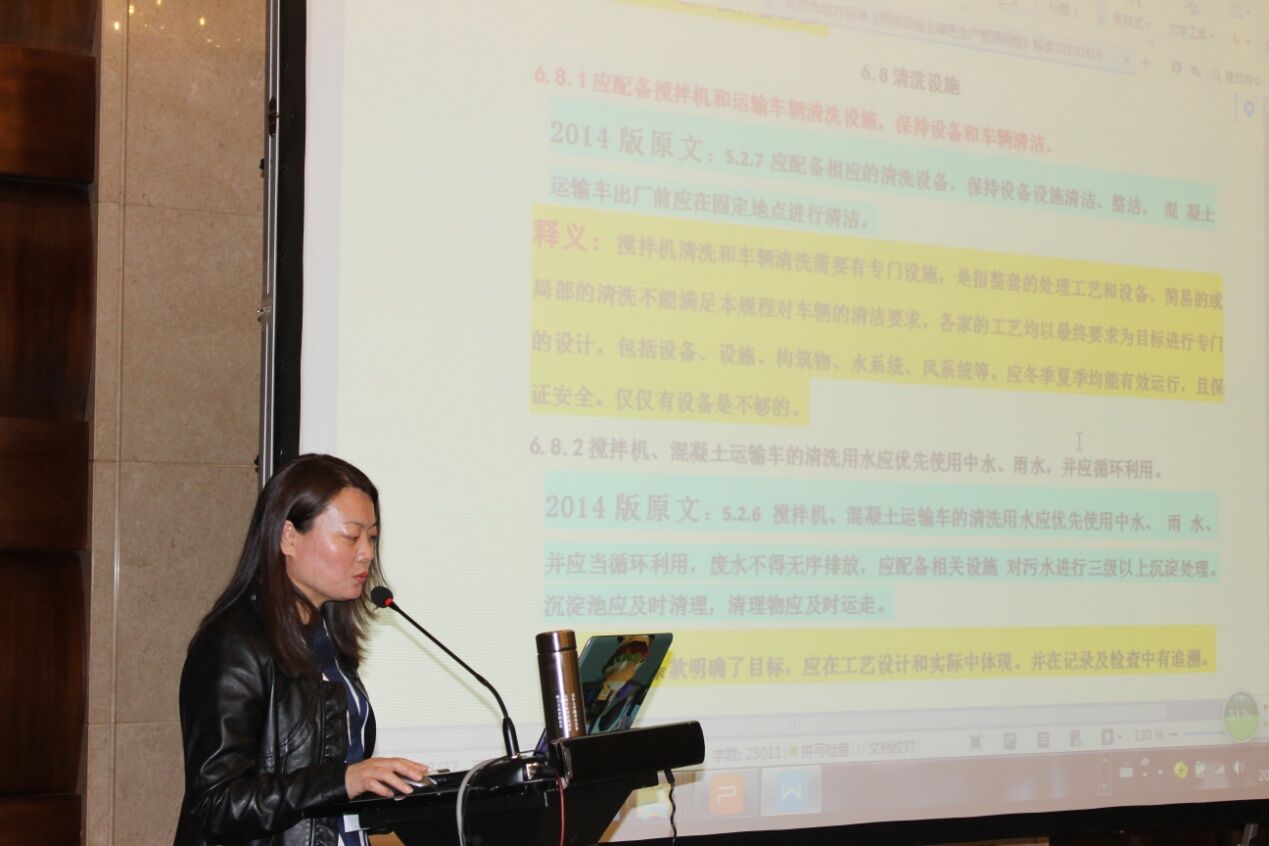 北京市砼協(xié)會秘書長齊文麗女士對《預拌混凝土綠色生產(chǎn)管理規(guī)程》及北京市“治超治限”政策解讀作了詳盡的講解。尤其是切合本次攪拌運輸車研討的主題,重點闡述了攪拌車在政策當中超限問題、攪拌車清潔問題,并對全封閉工作作出解讀。政策規(guī)定是詳盡和嚴謹?shù)模幜P力度也是非常之大,從首都北京的政策解讀中讓與會者感受到了行業(yè)發(fā)展的方向和設備生產(chǎn)單位制造改善的方向;