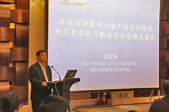 南京中聯(lián)混凝土有限公司副總經(jīng)理、混凝土機械協(xié)會資深專家雷素林先生作了《南京市對攪拌運輸車綠色環(huán)保的相關要求以及新技術應用情況報告》的主題演講,從南京環(huán)保和攪拌車治理過程中所遇到的問題提出了攪拌車在綠色環(huán)保和新技術應用方面的以下幾點建議: