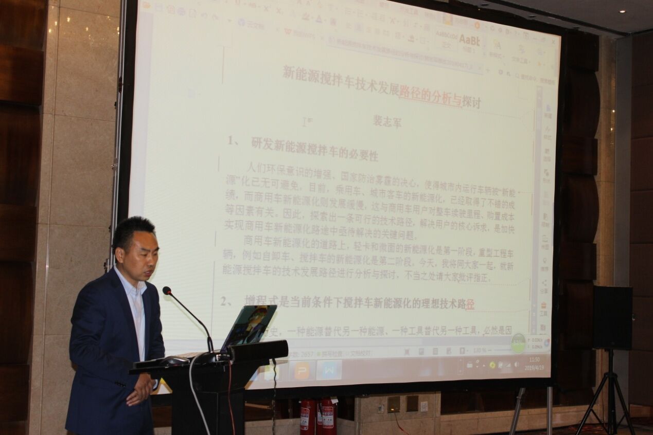 安徽星馬專用汽車有限公司總經(jīng)理助理裴志軍先生從國內外攪拌車的發(fā)展現(xiàn)狀出發(fā),作了“增程式是當前條件下攪拌車新能源化的理想技術路徑”和“增程式在攪拌車上應用前景展望”的《新能源攪拌車技術發(fā)展路徑的分析與探討》報告。