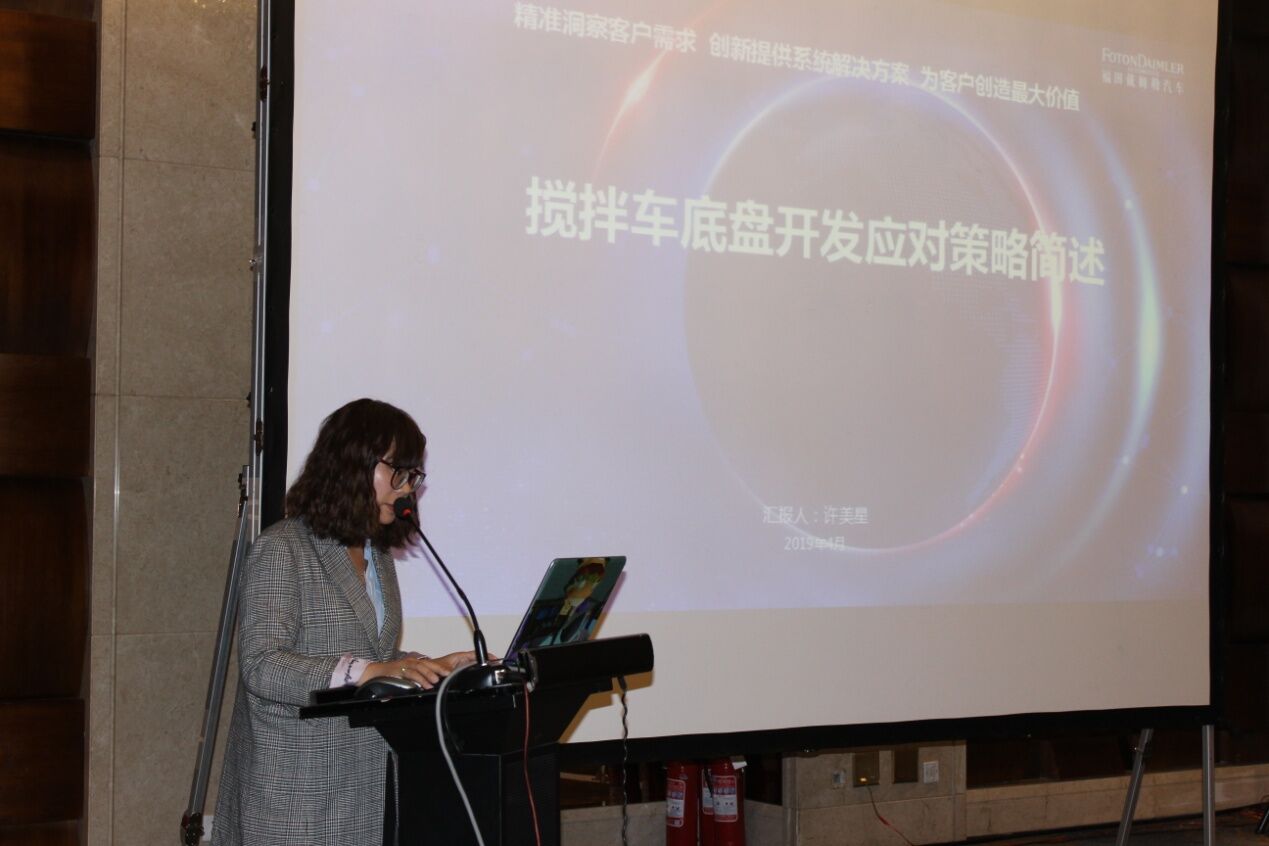 北汽福田汽車股份有限公司技術部部長許美星女士作了《適應攪拌車新法規(guī)之底盤設計》的主題報告,結合攪拌車的發(fā)展趨勢介紹了重卡發(fā)展的總體趨勢以及政策法規(guī)制定進程,有很多參考的價值和意義。同時許部長還介紹了認證體系中的主要應對項以及BFDA產(chǎn)品開發(fā)應對策略,讓與會者對于配套的底盤及政策有了更多了解。