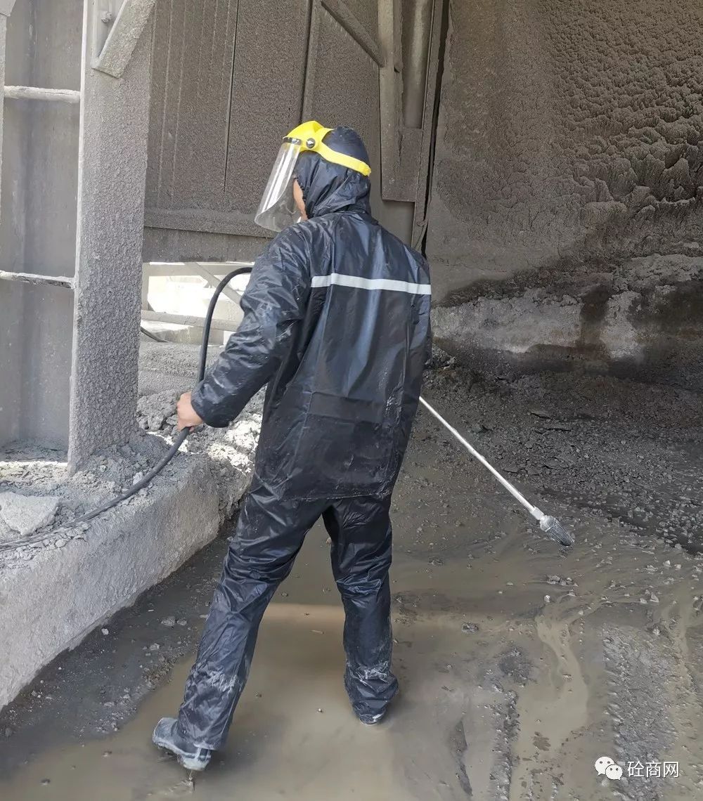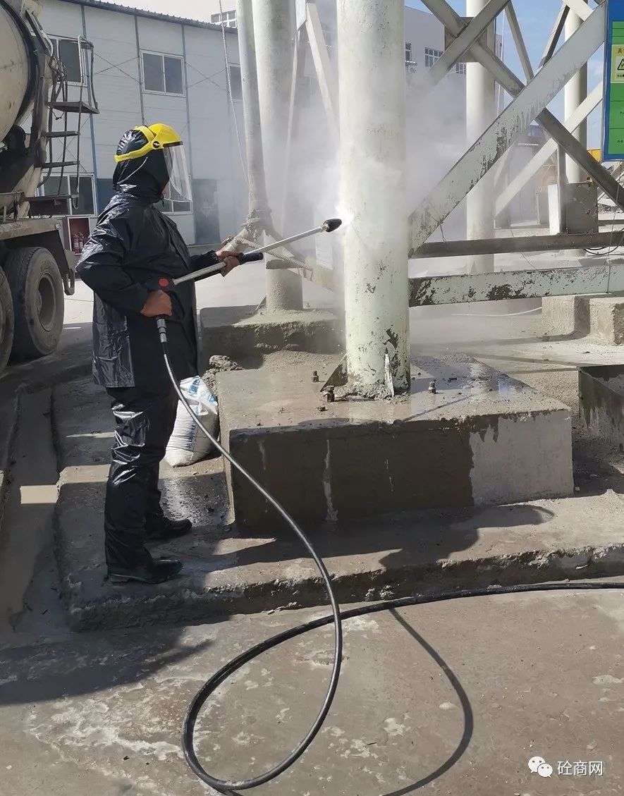 在楊技術員給站上工作人員進行初步講解指導后,首先對兩年沒有清理過的水泥倉支腿下方累積的混凝土進行了處理。那么,效果究竟怎么樣呢?具體視頻關注“砼商網(wǎng)”公眾號,回復“高壓清洗機”即可獲得技術員正準備打攪拌機主樓容易噴濺混凝土的地方時該攪拌站站長說道,這可得有兩年沒清理過的混凝土結塊,十幾公分厚呀!你們這高壓清洗機能打掉嗎?這是混凝土?。∵@么長時間了,還這么厚,打不下去怎么辦?正在小編心里打鼓的時候,楊技術員說道,沒問題,放心吧!