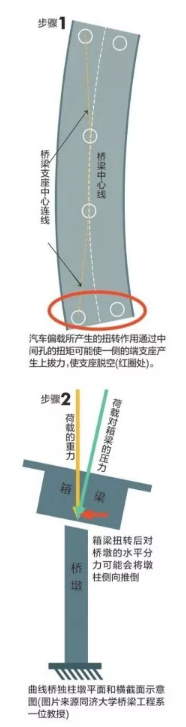 同濟(jì)大學(xué)橋梁工程系專(zhuān)家分析,曲線橋獨(dú)柱墩設(shè)計(jì)存在小概率隱患,國(guó)內(nèi)車(chē)況復(fù)雜或增大事故概率