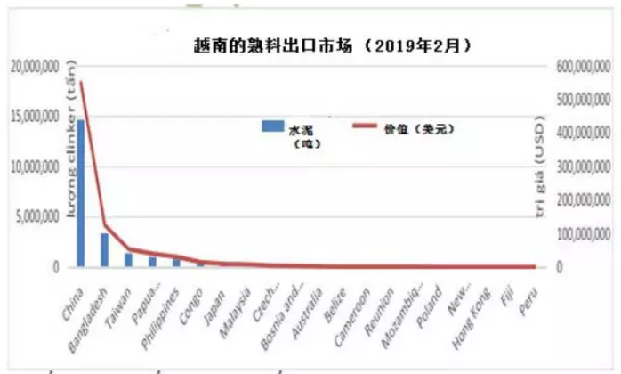 2019年,中國大陸是越南熟料水泥的主要市場占其市場份額的40.46%,達(dá)到631萬噸,價值248.19百萬美元。