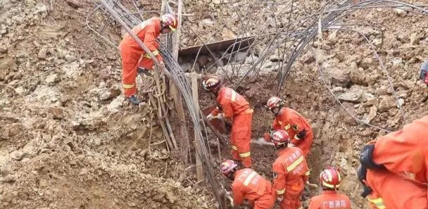 救援正在爭(zhēng)分奪秒進(jìn)行時(shí),13點(diǎn)56分,基坑突然發(fā)生二次塌方,原有救援通道被封堵,人員被埋位置更深,現(xiàn)場(chǎng)情況變得更加嚴(yán)峻復(fù)雜,救援難度進(jìn)一步增大。百色市應(yīng)急管理局、公安局、百色市紅十字會(huì)搜救救援隊(duì)、供電局等社會(huì)聯(lián)動(dòng)單位相繼到達(dá)現(xiàn)場(chǎng),并成立現(xiàn)場(chǎng)指揮部。