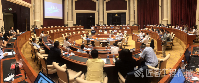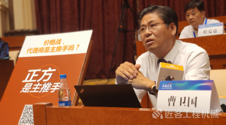 中國(guó)工程機(jī)械工業(yè)協(xié)會(huì)代理商工作委員會(huì)秘書長(zhǎng)、匠客工程機(jī)械傳媒總經(jīng)理?xiàng)钪痉贾鞒稚衔绲臅?huì)議并發(fā)言