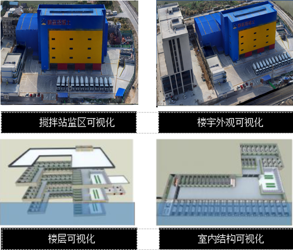 通過3D可視化技術(shù)手段,實現(xiàn)攪拌站全場景3D仿真可視瀏覽。場景構(gòu)建包括攪拌站監(jiān)區(qū)場景、樓宇外觀、樓層、室內(nèi)結(jié)構(gòu)、特定設(shè)備內(nèi)部等各層級場景的可視化。