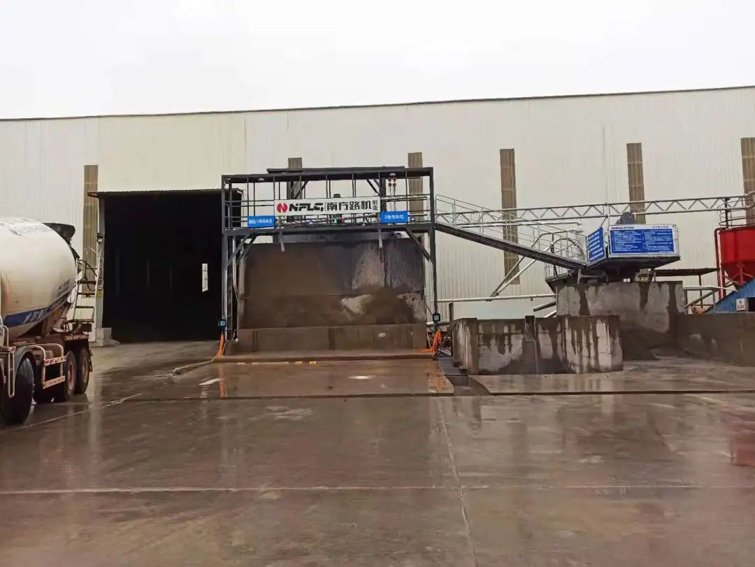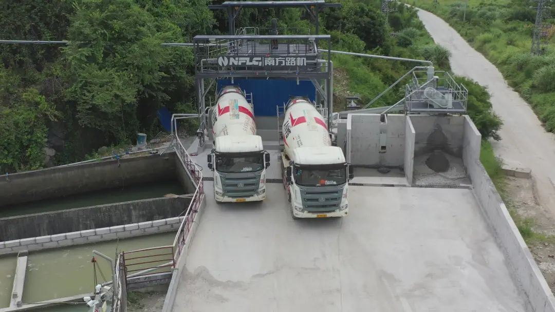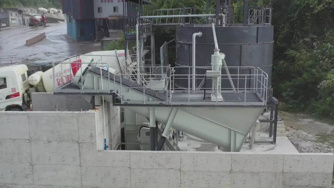 廠區(qū)一角,南方路機(jī)WCRE60設(shè)備一旁地上的漿水罐,具有自動(dòng)排污清污功能,能有效降低漿水濃度,減輕了人工清理成本。設(shè)有定時(shí)攪拌器,定時(shí)啟動(dòng)攪拌器,即可快速將漿水?dāng)嚢杈鶆颍瑵{水罐有自動(dòng)排污功能,有效地保障了漿水使用后混凝土的安全性。