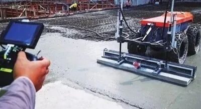 通過高速旋轉(zhuǎn)、擺動角度、抹平定型,地面抹平機(jī)器人的“機(jī)械手臂”在設(shè)定程序的控制下不會留下死角。工作人員介紹,傳統(tǒng)磨平機(jī)在作業(yè)時,需要工人花大力氣穩(wěn)住把手移動操作,而現(xiàn)在只需遙控?fù)u桿,施工效率是原來的2-3倍。
