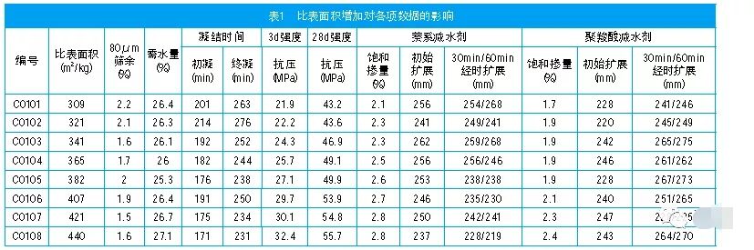 2.1 水泥比表面積的影響