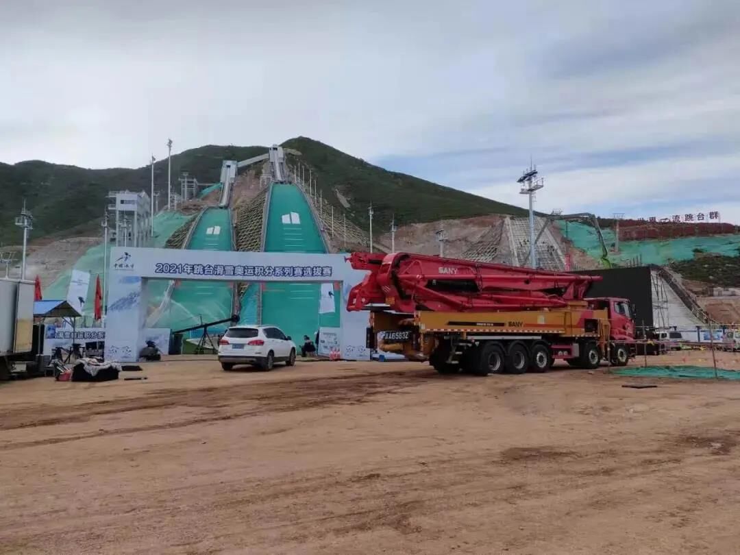 ▲三一泵車在淶源國家跳臺滑雪訓練科研基地協(xié)助拍攝