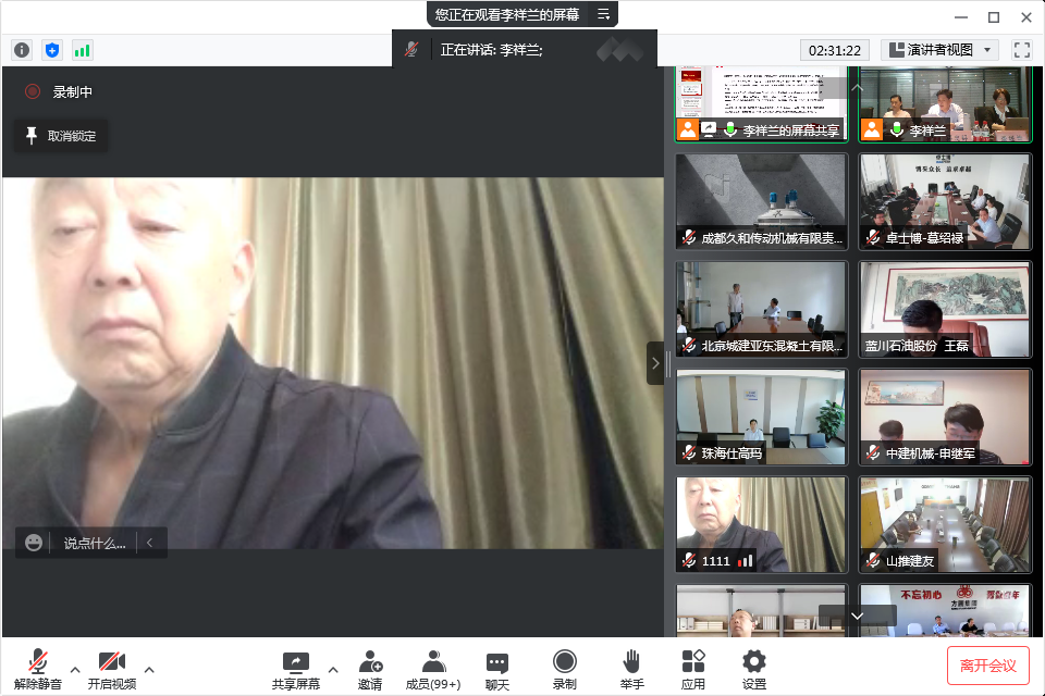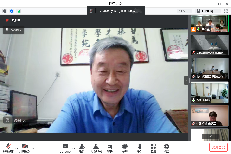 混凝土機(jī)械分會的年會還得到很多行業(yè)老前輩,專家、高工、行業(yè)精英的關(guān)注和支持,在自由交流環(huán)節(jié),中國工程機(jī)械工業(yè)協(xié)會名譽會長祁俊祁會長也發(fā)言祝賀,首先祝賀大會線上會議開的非常成功,他呼吁現(xiàn)在中國混凝土機(jī)械在全世界已占主導(dǎo)地位,站在領(lǐng)跑位置,肯定了行業(yè)的領(lǐng)先性,但由于各種因素的疊加,行業(yè)也到了最困難的時候,協(xié)會要增加上下游的互動,爭取支持,抱團(tuán)取暖,希望混凝土機(jī)械在工程機(jī)械整個領(lǐng)域大家共同進(jìn)步,相互幫扶渡過難關(guān)。