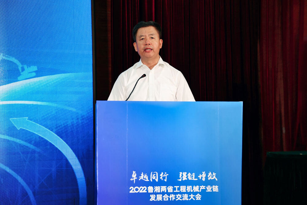山東省工業(yè)和信息化廳副廳長靖士寬表示:“山東是裝備制造業(yè)大省,產(chǎn)品種類豐富,農(nóng)業(yè)機械、機械基礎(chǔ)件、鑄造、工程機械、內(nèi)燃機、醫(yī)療設(shè)備、汽車行業(yè)居全國前列。從產(chǎn)業(yè)規(guī)模、競爭力、影響力等方面來看,湖南省、山東省都是工程機械強省,都承擔(dān)著國家工程機械產(chǎn)業(yè)鏈供應(yīng)鏈安全的重任,‘優(yōu)勢互補、協(xié)同創(chuàng)新、合作共贏’將會成為我們兩省下一步合作的主旋律。這次共同舉辦2022魯湘兩省工程機械產(chǎn)業(yè)鏈發(fā)展合作交流大會,是推動湖南、山東兩省工程機械產(chǎn)業(yè)發(fā)展,促進兩省產(chǎn)業(yè)鏈企業(yè)合作,打通兩省產(chǎn)業(yè)鏈協(xié)作創(chuàng)新,引領(lǐng)全國工程機械產(chǎn)業(yè)發(fā)展的重要實踐。”