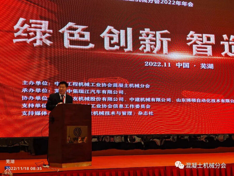 2022年11月17日至19日,以“綠色創(chuàng)新 智造未來”為主題的中國工程機(jī)械工業(yè)協(xié)會(huì)混凝土機(jī)械分會(huì)2022年年會(huì)在安徽蕪湖隆重舉行。