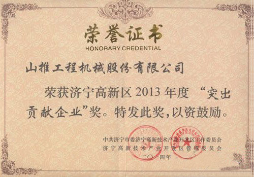 山推全年在區(qū)內(nèi)的科技創(chuàng)新與技術(shù)發(fā)展方面起到了輻射帶動(dòng)作用,財(cái)政貢獻(xiàn)顯著,為全區(qū)經(jīng)濟(jì)社會(huì)又好又快發(fā)展做出了突出貢獻(xiàn)。根據(jù)《濟(jì)寧高新區(qū)管委會(huì)關(guān)于鼓勵(lì)企業(yè)創(chuàng)新發(fā)展的若干規(guī)定》(濟(jì)高新管發(fā)【2012】32號(hào))文件精神,公司被授予“突出貢獻(xiàn)企業(yè)”與“專利特別獎(jiǎng)”,同時(shí)獲得一項(xiàng)科技進(jìn)步獎(jiǎng)與行業(yè)標(biāo)準(zhǔn)獎(jiǎng)勵(lì),研究總院副院長(zhǎng)周士建博士榮獲“551人才”稱號(hào)。