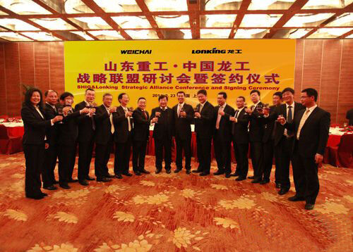 山東重工集團(tuán)有限公司總經(jīng)理江奎先生和中國(guó)龍工控股有限公司首席執(zhí)行官兼總裁邱德波先生,代表各自企業(yè)共同訂立了《戰(zhàn)略合作協(xié)議》,攜手打造轉(zhuǎn)型升級(jí)、創(chuàng)新發(fā)展戰(zhàn)略聯(lián)盟的新航母。