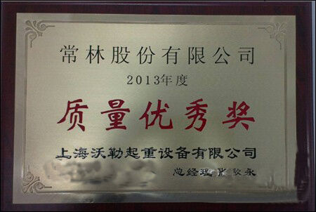 因常林股份公司在交貨期、產(chǎn)品質(zhì)量等方面的優(yōu)秀表現(xiàn),在知名的裝卸設(shè)備制造商上海沃勒起重設(shè)備有限公司2013年度供應(yīng)商會(huì)議上,被評為優(yōu)秀供應(yīng)商,榮獲質(zhì)量優(yōu)秀獎(jiǎng)。