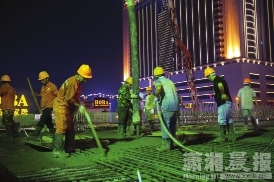 8月15日晚8時,長沙萬家麗廣場對面,一輛水泥罐車開進(jìn)萬家麗路與荷花路交會處東南角。接著這輛罐車伸出高高的手臂,連續(xù)不斷地向萬家麗路高架輸送預(yù)拌混凝土,數(shù)十名工程技術(shù)人員在綁扎好鋼筋的最后一跨箱梁上嫻熟操作。上海城建市政集團(tuán)萬家麗路快速化改造工程項目副總指揮、項目經(jīng)理傅建平透露,15日晚8時至16日上午10時,十名工程技術(shù)人員要完成120米橋面混凝土澆筑,到16日上午10時,萬家麗路快速化高架主線結(jié)構(gòu)全面貫通。今年國慶節(jié),作為湖南長沙乃至湖南首條按照快速化改造的高架橋,將實現(xiàn)全面竣工通車。