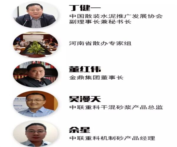 此次方案的參與實(shí)施者對有中國散裝水泥推廣發(fā)展協(xié)會(huì)副理事長兼秘書長丁健一;河南省散辦專家組;金鼎集團(tuán)董事長董紅偉;中聯(lián)重科干混砂漿產(chǎn)品總監(jiān)吳漫天;中聯(lián)重科機(jī)制砂產(chǎn)品經(jīng)理余星