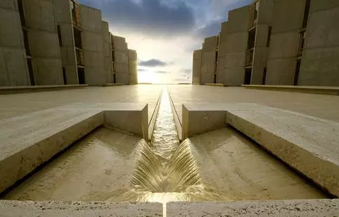 路易斯·康設(shè)計的加利福尼亞索爾克研究所,是一件大師級的作品。這里既是“具有學(xué)術(shù)氛圍的隱居之所”,也是科學(xué)研究的靈感之地?;炷恋臐仓?,利用了從羅馬建筑研究汲取的技術(shù)。為了充分體現(xiàn)混凝土材料的特色,建筑師在材料設(shè)計完成后沒有再做任何的裝飾。