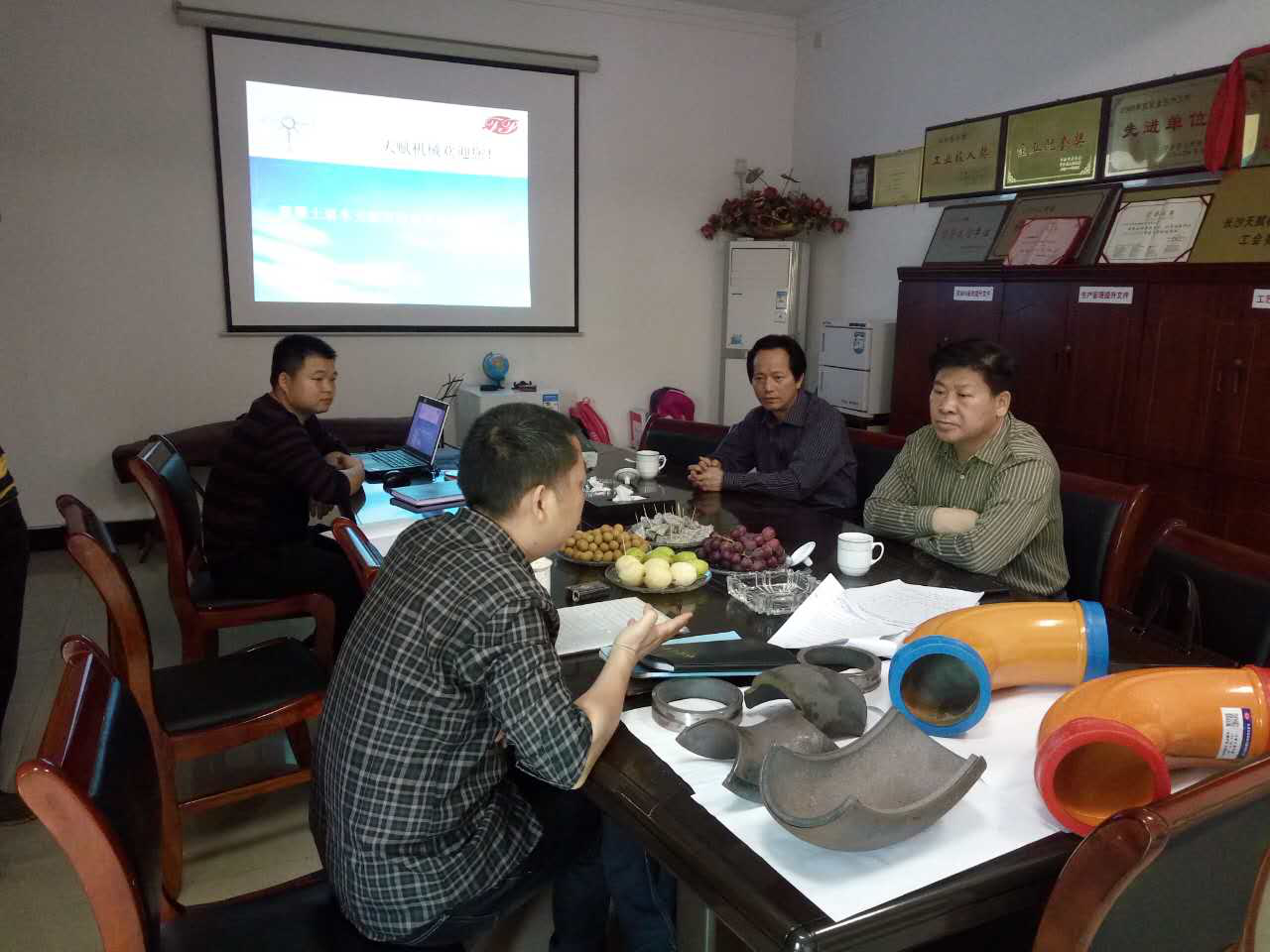 2016年5月1日上午,受長沙天賦機(jī)械設(shè)備有限公司熱情邀請,符忠軒會長利用五一假期時(shí)間對混凝土機(jī)械配件——耐磨彎管供應(yīng)商進(jìn)行了走訪調(diào)研。