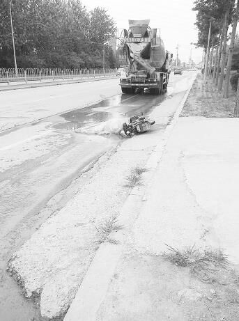 “這個(gè)女的騎著電動(dòng)車,看起來(lái)30歲左右,開(kāi)攪拌車的司機(jī)是個(gè)男的,兩人都是由南向北同向行駛?!备浇患疑痰昀习甯嬖V記者,當(dāng)時(shí)兩人前面還有一輛灑水車在工作,電動(dòng)車和攪拌車都避開(kāi)了這輛灑水車?yán)^續(xù)行駛。