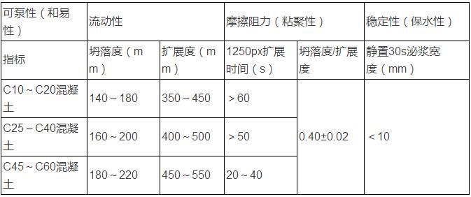 混凝土可泵性是表示混凝土在泵壓下沿輸送管道流動的難易程度以及穩(wěn)定程度的特性[1]??杀眯砸螅夯炷涟韬衔镌诒们粌纫子诹鲃?,以充滿所有空間;有良好的粘聚性、保水性,在泵送過程中不分層、不離析、不泌水;混凝土拌合物與管壁之間以及混凝土內摩擦阻力較小[5]。泵送性能指標包括:坍落度、擴展度和摩擦阻力(表征流動的難易程度),壓力泌水值(表征流動的穩(wěn)定程度)。混凝土可泵性與混凝土拌合物的和易性相對應。