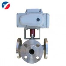 電動(dòng)法蘭三通球閥采用JW系列回轉(zhuǎn)式角行程電動(dòng)執(zhí)行機(jī)構(gòu),以AC220V、AC380V或DC24V電源電壓作動(dòng)力,接受工業(yè)自動(dòng)化儀表控制系統(tǒng)輸入的(4-20mA、或1-5VDC)電流信號(hào)或電壓信號(hào),即可控制運(yùn)轉(zhuǎn),實(shí)現(xiàn)對工藝介質(zhì)的比例調(diào)節(jié)或二位切換控制。三通球閥是綜合國內(nèi)外先進(jìn)技術(shù)而開發(fā)的新型三通切換型調(diào)節(jié)閥。標(biāo)準(zhǔn)球芯有L型三通雙口孔種,改變球芯與管道的相對角度,可以對三支管道流體實(shí)現(xiàn)不同的組合控制;T型孔道可起配比作用,適用于液休、氣體、蒸汽等介質(zhì)的配比調(diào)節(jié)與控制。