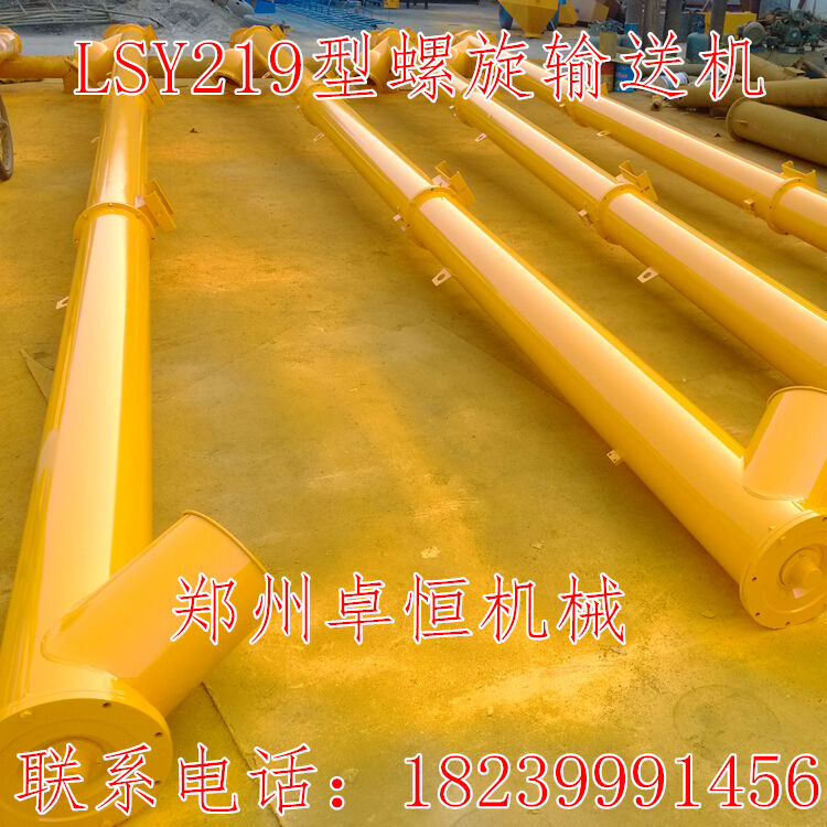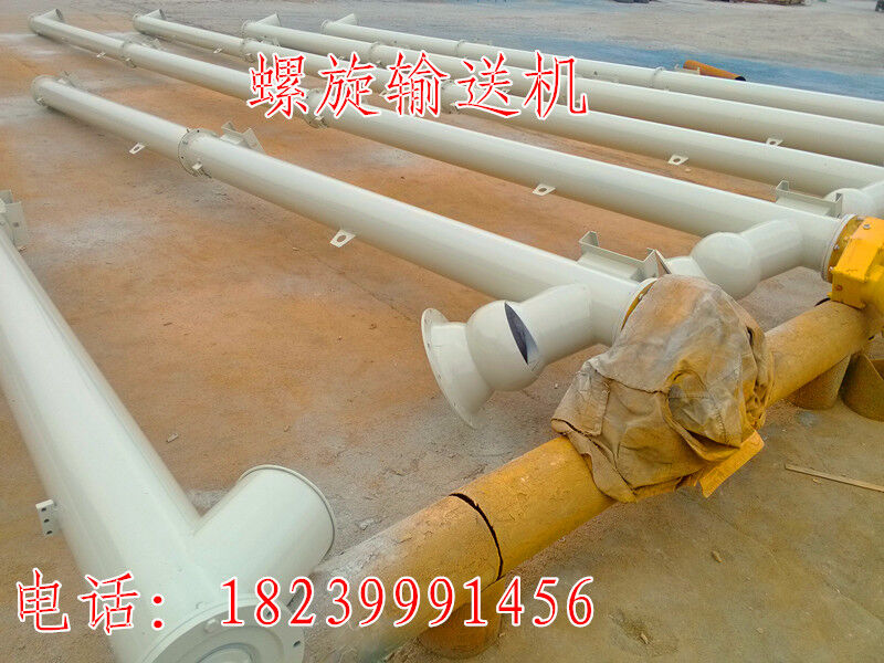 旋轉(zhuǎn)的螺旋葉片將物料推移而進(jìn)行螺旋輸送機(jī)輸送,使物料不與螺旋輸送機(jī)葉片一起旋轉(zhuǎn)的力是物料自身重量和螺旋輸送機(jī)機(jī)殼對物料的摩擦阻力。螺旋輸送機(jī)旋轉(zhuǎn)軸上焊的螺旋葉片,葉片的面型根據(jù)輸送物料的不同有實(shí)體面型、帶式面型、葉片面型等型式。螺旋輸送機(jī)的螺旋軸在物料運(yùn)動方向的終端有止推軸承以隨物料給螺旋的軸向反力,在機(jī)長較長時,應(yīng)加中間吊掛軸。