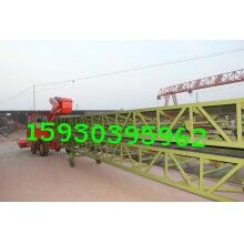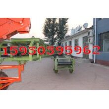組合形式為:底盤有駕駛室和方向盤,有自動行走功能;扒谷機(jī)安裝在底盤前部,可升降;組合輸送機(jī)安裝在底盤后部,可相對底盤左右旋轉(zhuǎn),輸送機(jī)部分又分為上下兩層輸送機(jī),上層輸送機(jī)的終端用轉(zhuǎn)盤和跑輪與下層輸送機(jī)連接,兩者可相對旋轉(zhuǎn)和移動,扒谷機(jī)部分又可以和上層輸送機(jī)90度范圍內(nèi)轉(zhuǎn)向。