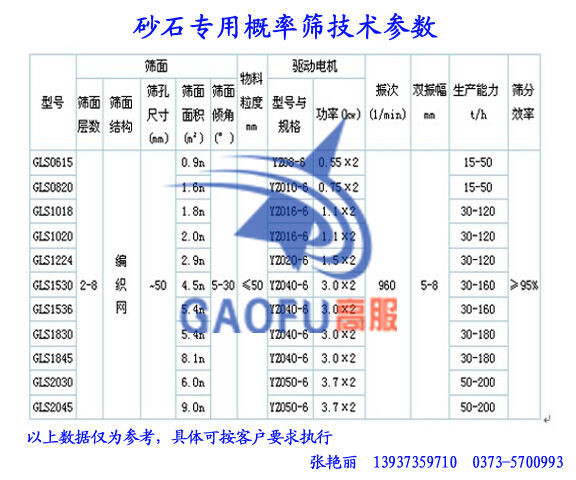 ★砂石振動(dòng)篩-高服概率篩分機(jī)技術(shù)參數(shù)