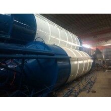 水泥倉(cāng)(水泥罐)為圓柱形結(jié)構(gòu),底部由四條圓管支腿支撐整個(gè)倉(cāng)體,整倉(cāng)全部為鋼結(jié)構(gòu)形式,焊接而成;頂部設(shè)有除塵器及壓力安全閥。
