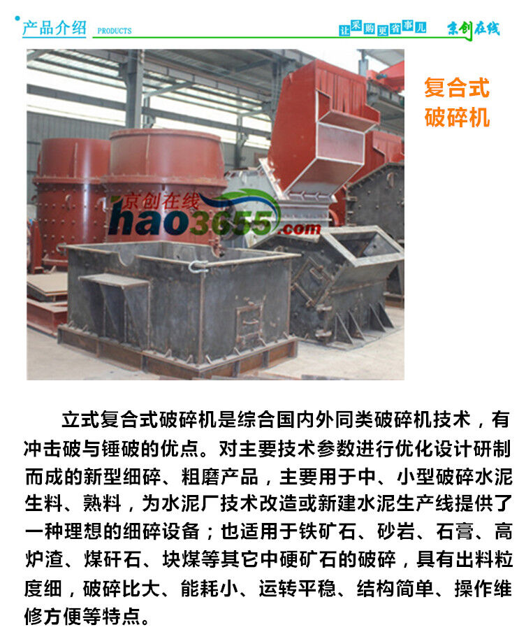 立式復(fù)合式破碎機1500簡稱為復(fù)合破,是破碎生產(chǎn)線和制砂生產(chǎn)線中常用設(shè)備之一。復(fù)合破碎機是一種無篩條、可調(diào)式細碎設(shè)備,可廣泛適用于水泥廠的生料、熟料細碎作業(yè),同時也可用于白云石、焦寶石、鉛鋅礦、蛇紋石、高爐渣、煤矸石、磷礦石等中等硬度物料的細碎作業(yè),特別適用于硬質(zhì)石灰?guī)r、白云巖、花崗巖、玄武巖等人工造砂或高速公路路面石料的加工破碎。