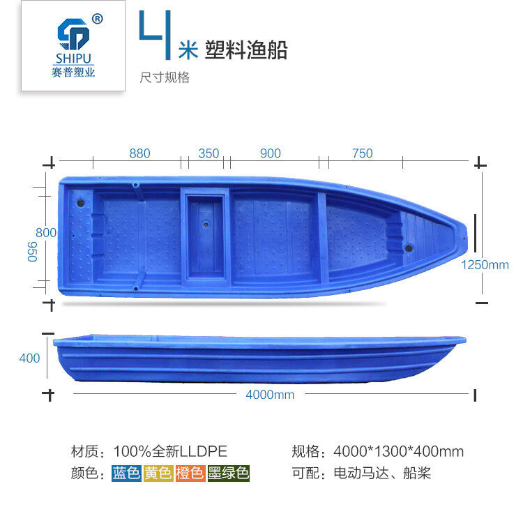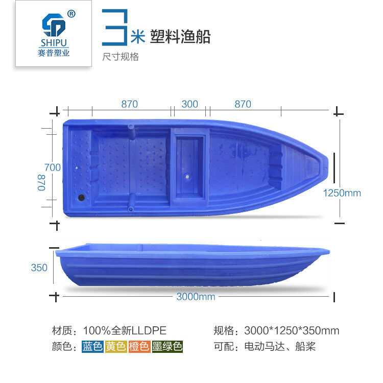 3.本公司專業(yè)生產(chǎn)的塑料漁船,是為水產(chǎn)養(yǎng)殖戶量身定做的,采用進(jìn)口韓國(guó)LLDPE材質(zhì),具有很強(qiáng)的抗老化性,保證船的使用壽命在20年以上。一次成型,無(wú)縫焊接。顏色可改。船身都是雙層的質(zhì)量更好浮力更大 目前所有的塑料船都打上了泡沫。
