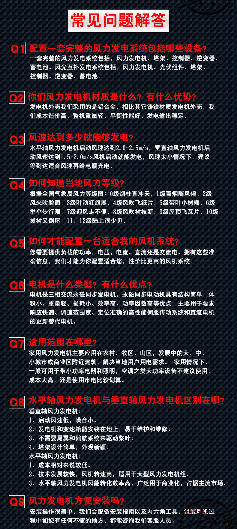 注意:以上寶貝報(bào)價(jià)為風(fēng)力發(fā)電機(jī)主體的價(jià)格(含:5KW發(fā)電機(jī)、回轉(zhuǎn)體、尾舵、風(fēng)輪、風(fēng)葉等組件),如需逆變器、蓄電池、控制器、太陽(yáng)能板或塔架,請(qǐng)咨詢客服。