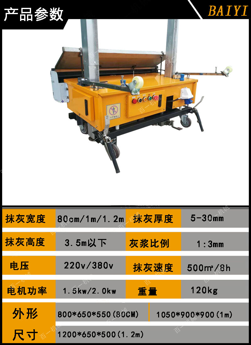 1 自動抹灰、自動升降、一次性成型,厚薄可調(diào),無落地灰。