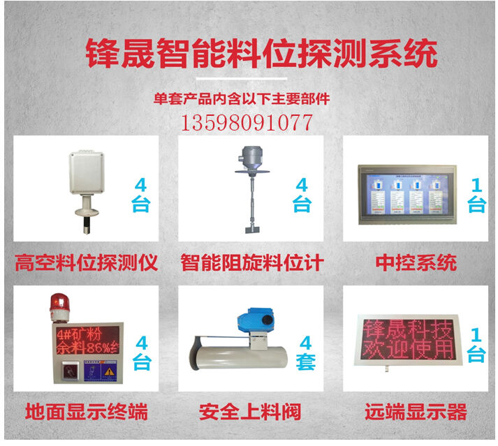 由高空料位探測儀、阻旋式料位計、中控系統(tǒng)、地面顯示終端、安全上料閥、遠程顯示器六大子系統(tǒng)組成!