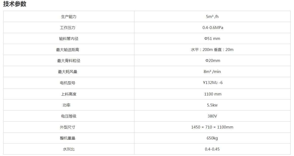 生產(chǎn)能力:5m3/h工作壓力:0.4-0.6MPa輸料管內(nèi)徑:51mm
