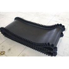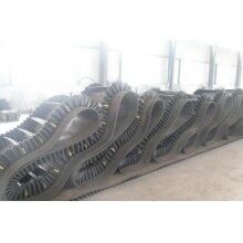 我們可以生產(chǎn)普通一般的大傾角裙邊輸送帶,是由基帶,擋邊,隔板三部分組成,三者共同作用,幫助物料提升到指定高度?;鶐?,擋邊,隔板是通過二次硫化的方式硫化到一起的,十分的牢固。另外為了能夠在物料大批量運(yùn)輸下隔板的穩(wěn)固,我們還在擋邊與隔板中間加入穩(wěn)固螺絲,這個(gè)我們是不收取任何費(fèi)用的。
