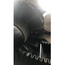 而使用比較多的就是那種帶擋邊帶隔板的輸送帶,也就是大傾角輸送帶。在這個(gè)輸送帶當(dāng)中隔板的作用其實(shí)有兩個(gè):一個(gè)是起到提升的作用,隔板是在擋邊中間,物料就是由給料機(jī)落入到各個(gè)擋邊中央,由輸送機(jī)提升到指定高度。而另一個(gè)作用就是料斗的作用,每條大傾角擋邊輸送帶由若干個(gè)隔板組成。每個(gè)隔板都根據(jù)客戶的需求設(shè)定了相等的間距,形成了一個(gè)小小的儲物室。