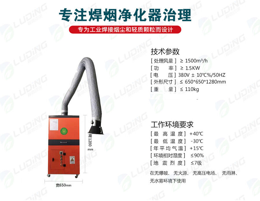 焊接煙塵又稱為電焊煙霧,是指焊接操作中經(jīng)常會(huì)產(chǎn)生一些有毒的物質(zhì)。如:乙醛、松香酸、異氰酸鹽、氮氧化物、硫化物、碳?xì)浠衔锏?。焊接煙塵是一種十分復(fù)雜的物質(zhì),lans已在煙塵中發(fā)現(xiàn)的元素多達(dá)20種以上,其中含量多的是FeCa、Na等,其次是SiAl、Mn、TiCu等。焊接煙塵中的主要有害物質(zhì)為Fe2O3、SiO2Mao、HF等,其中含量多的為Fe2O3,一般占煙塵總量的35.56 ,其次是SiO2,其含量占1020 ,Mao520 左右。